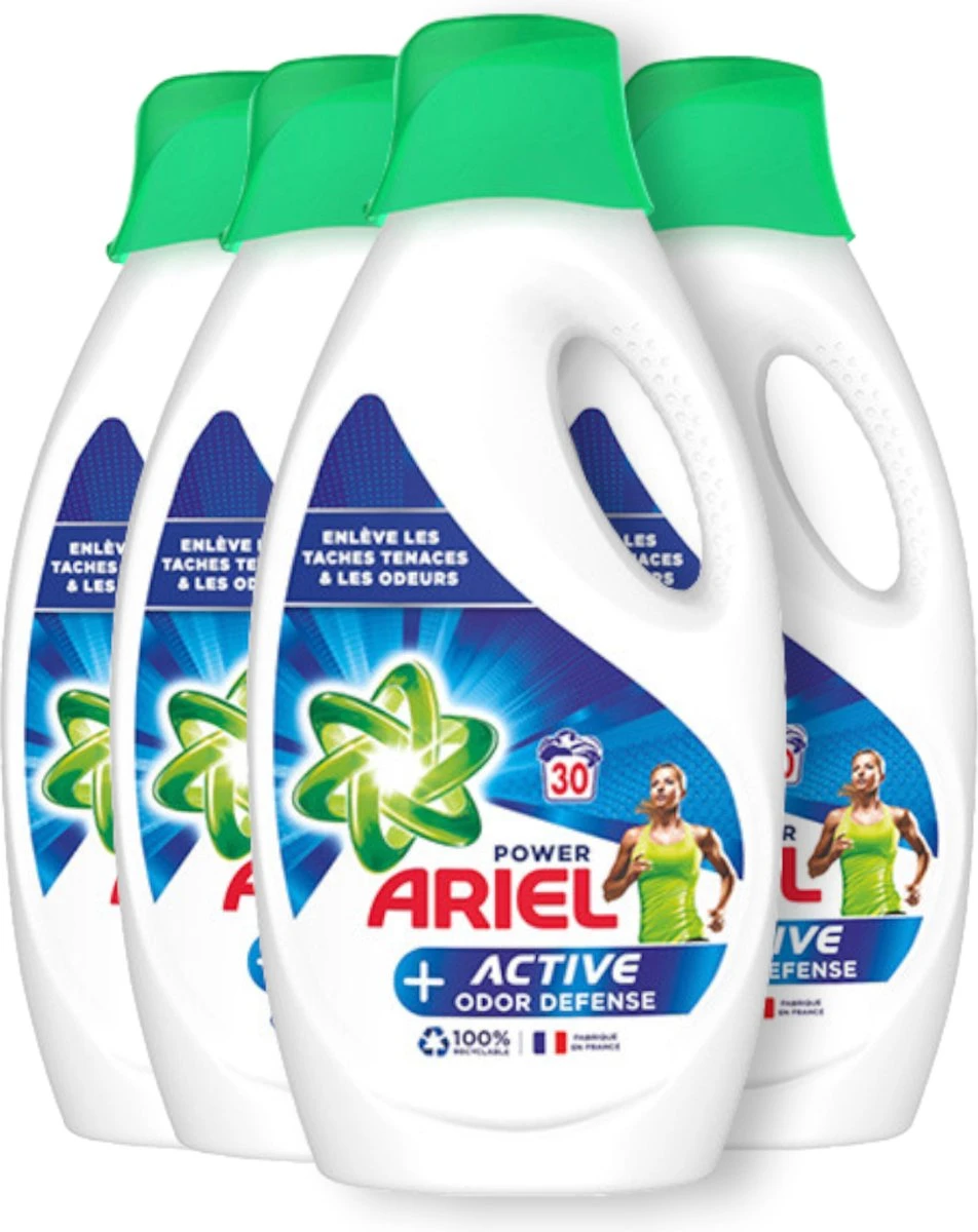 - Recyclebare verpakking: Ariel vloeibaar wasmiddel wordt geleverd in een recyclebare verpakking