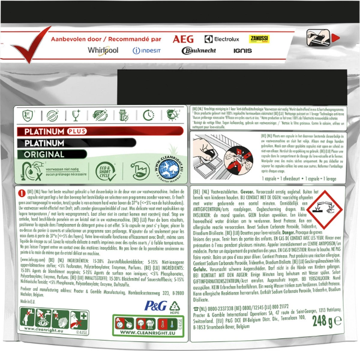 Dreft Platinum Plus All in One vaatwascapsules zorgen voor een reiniging als nieuw, het geeft je Dreft’s beste collectie voor het reinigen van hardnekkig voedsel en het helpt zelfs de dofheid weg te nemen die in de loop van de tijd is opgebouwd, om de oorspronkelijke glans van je vaatwerk te herstellen. Dreft Platinum Plus geeft je een uitmuntende reiniging en verwijdert hardnekkige voedselvlekken, zelfs in de testconditie van een korte cyclus. Dus, als je weinig tijd hebt, is er niets aan de hand. Schakel over op kort. Dreft combineert vloeistof en poeder in één krachtige capsule. Het ultra-oplosbare zakje lost snel op en werkt goed in korte cycli omdat het snel begint te reinigen om de klus klaar te krijgen. En ze zijn gemakkelijk te gebruiken. Plaats ze gewoon in het doseerbakje van je vaatwasser, met verpakking. Schakel over op de korte cyclus* en bespaar tijd, energie en water in vergelijking met een gewone, standaard cyclus!