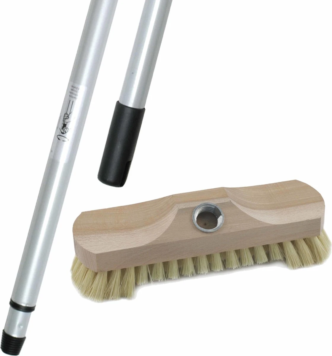 Houten schrobborstel/schrobber inclusief metalen telescoopsteel zilver 200 cm. Schrobborstel/schrobber met natuurlijke vezels en zilveren telescoopsteel. Materiaal schrobborstel: metaal. Formaat: 23 cm. Materiaal telescoopsteel: kunststof/natuurlijke vezels. Afmeting: ingeschoven ca 100 cm lang. Uitgeschoven ca 200 cm lang. bestaande uit 1x Metalen telescoopsteel zilver 200 cm, 1x Luiwagen schrobborstel/schrobber van hout 23 cm