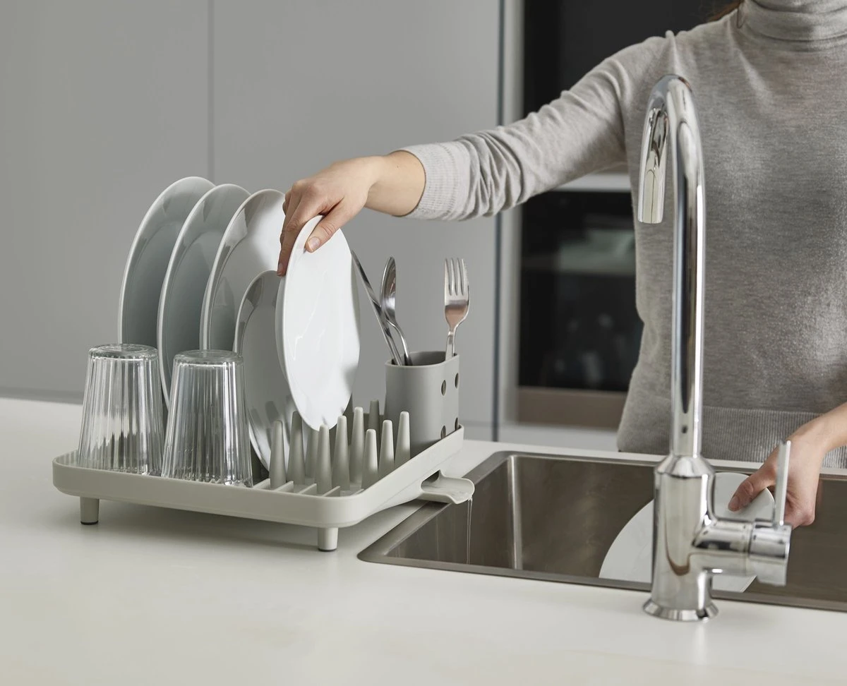Deze multifunctionele afdruiprek van Joseph&Joseph kan worden gebruikt voor het drogen van de borden maar ook ideaal voor voor het afwassen van pannen of bestek.