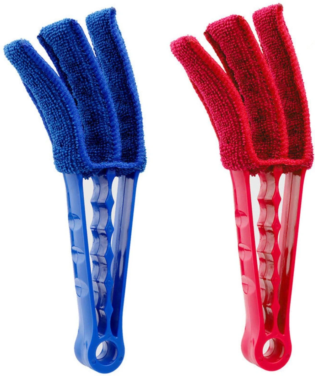 Deze schoonmaak gadget bevat drie stoffers waarmee het schoonmaken van jaloezieën een fluitje van een cent wordt. Klem de drie stoffers om de lamellen, de jaloezie of de airco heen en haal vervolgens de borstel heen en weer.
