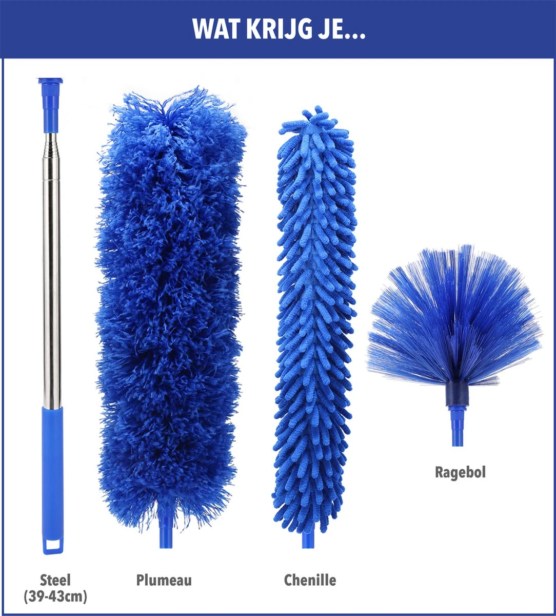 Bestel dan nu de Telescopische Plumeau met 3 verschillende Opzetstukken!
